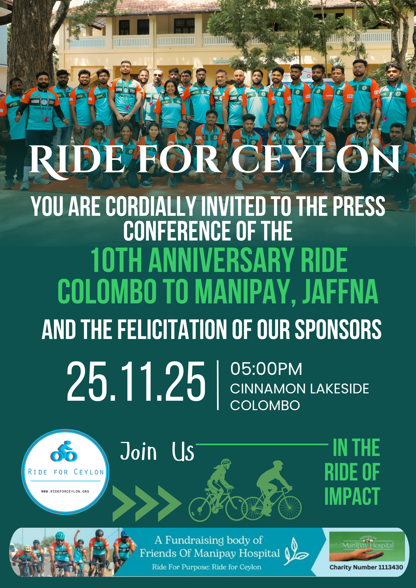 We are excited to announce the upcoming Press Conference for Ride for Ceylon 2026. Join us as we unveil key milestones, partnerships, and the vision for our 10th Annual Gala Ride.